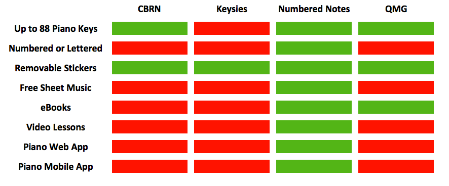 Piano Key Sticker Comparison Matrix